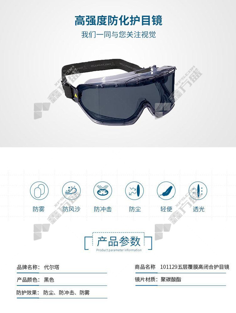 delta anti-fog, anti-glare, anti-scratch safety goggles 101129 101129 black no specifications