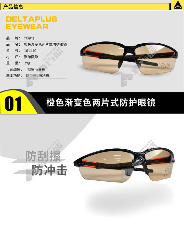 delta anti-scratch safety goggles 101110 orange gradient no specifications