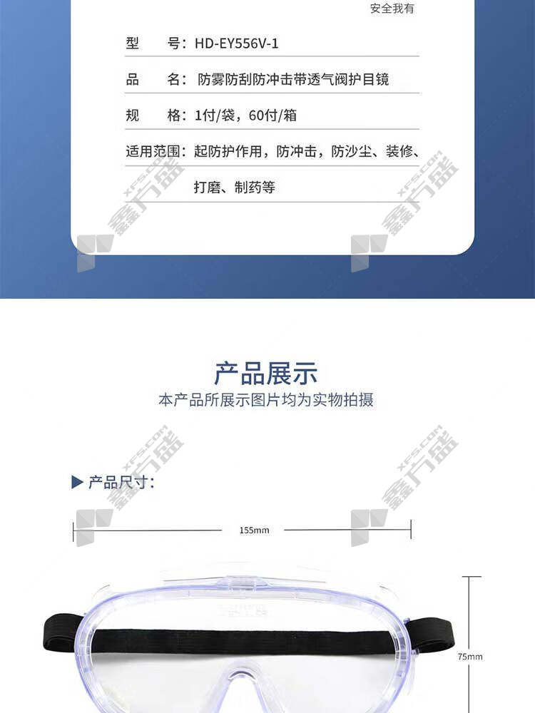 handun anti-fog, scratch-proof and impact-resistant UV goggles with breathable valve HD-EY556V transparent without specifications