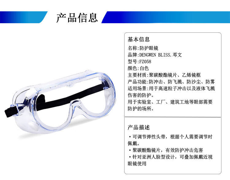 DENGWEN BLISS. deng wen's effective protection against liquid splash, wind and sand protection goggles FZ058 one size fits all protective glasses (unit: deputy ) FZ058 no specifications
