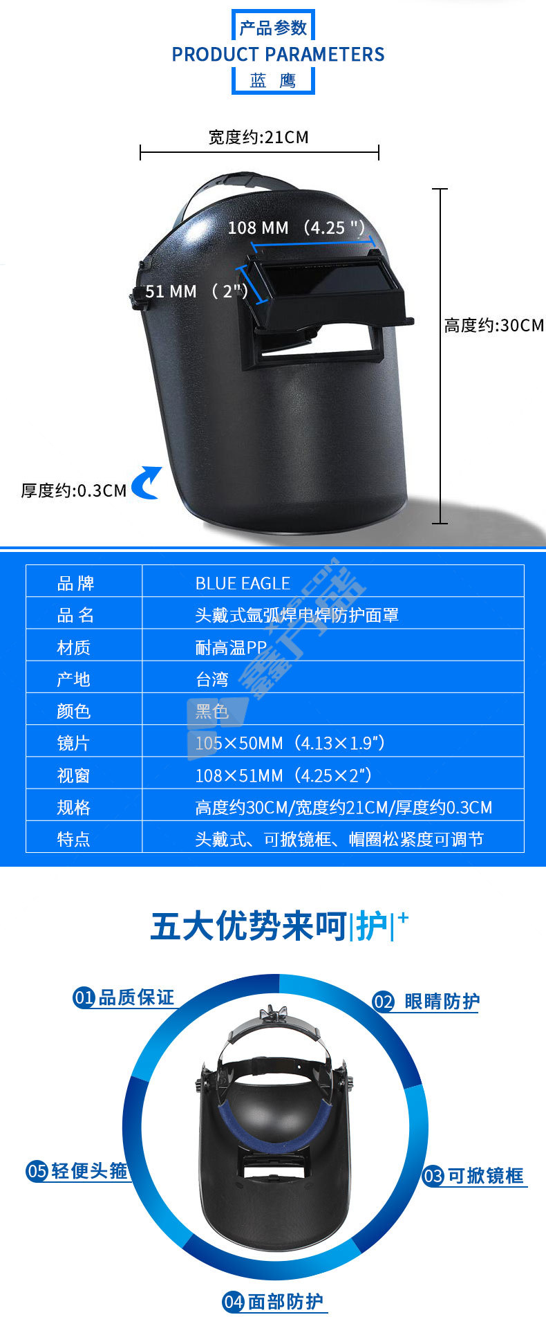 blue eagle welding mask no specifications