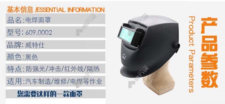 wits welding mask 609.0002 polymer material adopts one-time molding technology and has a field of view of 91 ×38mm head-mounted double piece, outer protective piece PC material black no specification