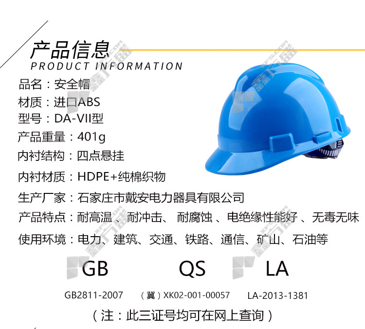 diane DA-VII type construction site construction anti-smashing safety helmet cloth hat ABS white DA-VII ABS white DA-VII