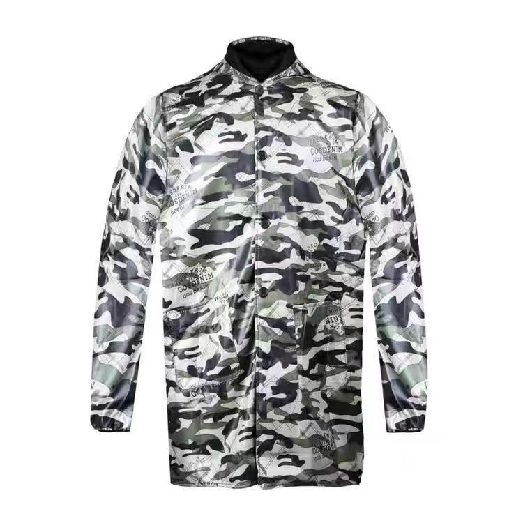 衣服宽大,保嗳。穿上身舒服,防水防油很好。
