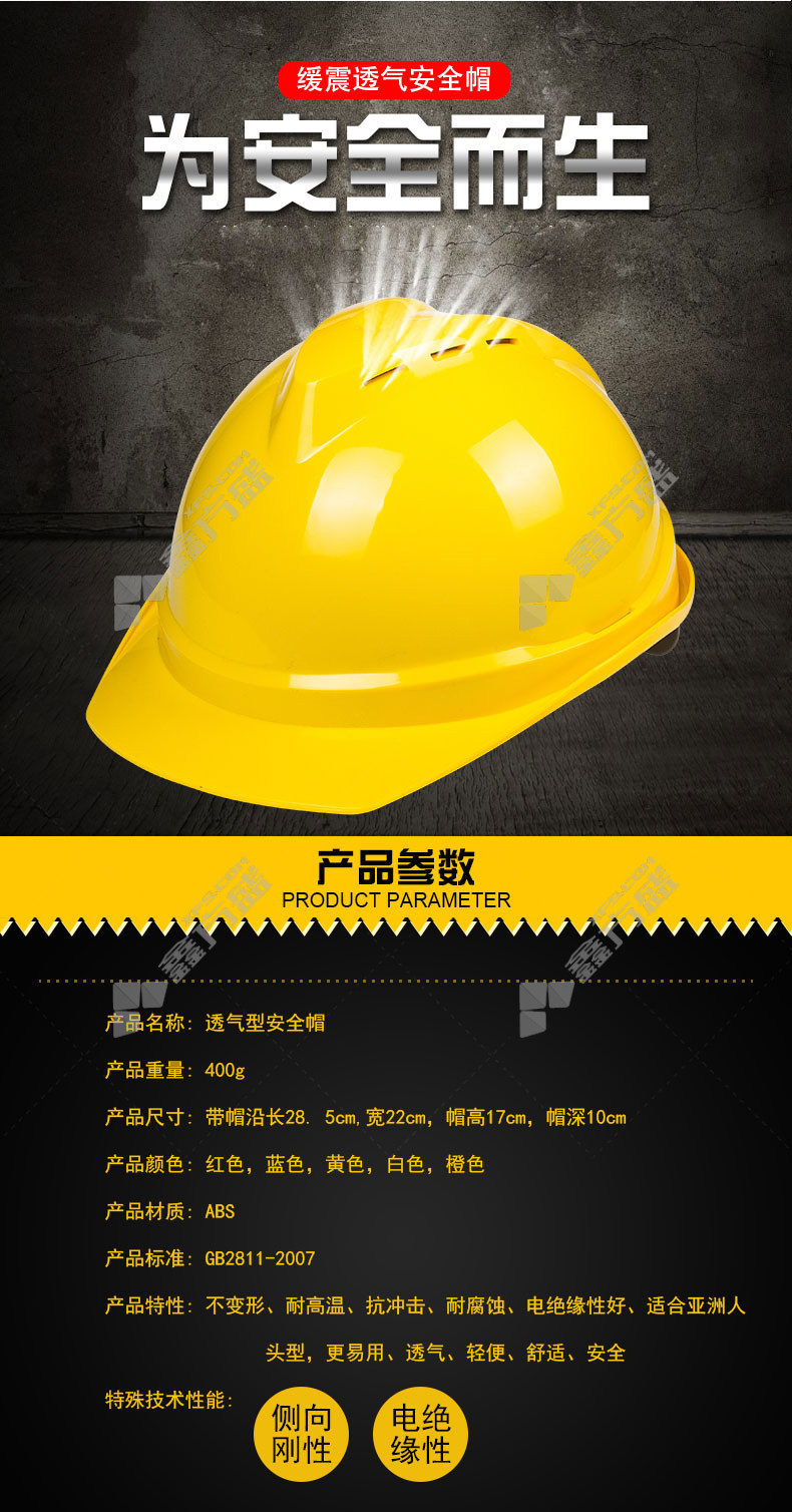 cool shield V type breathable safety helmet V type V type /yellow