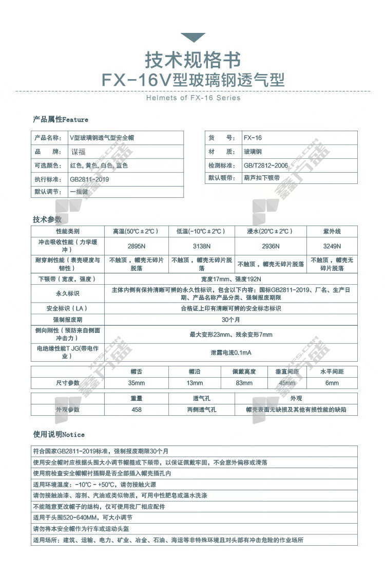 moufu construction engineering construction fiberglass safety helmet FX-16 red FX-16/red