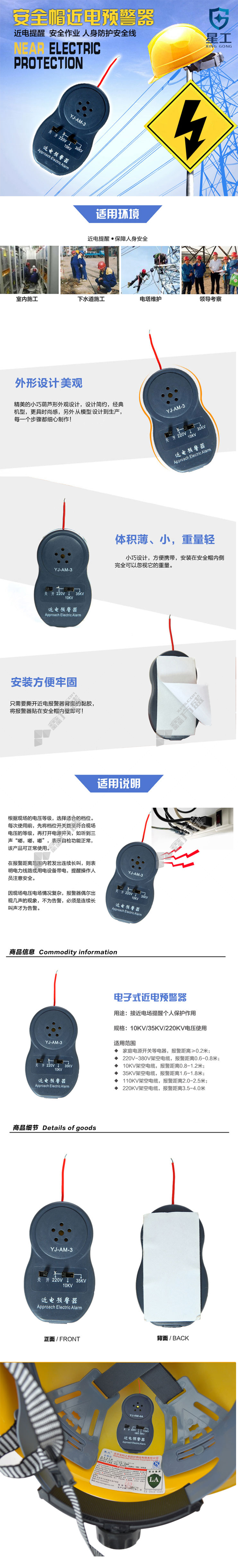 xinggong 3-speed safety helmet near power alarm YJ-AM-3 the adhesive inner wall is small and has no specifications.