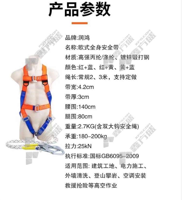 Full body double hooks with three-meter rope length safety harness without specifications.