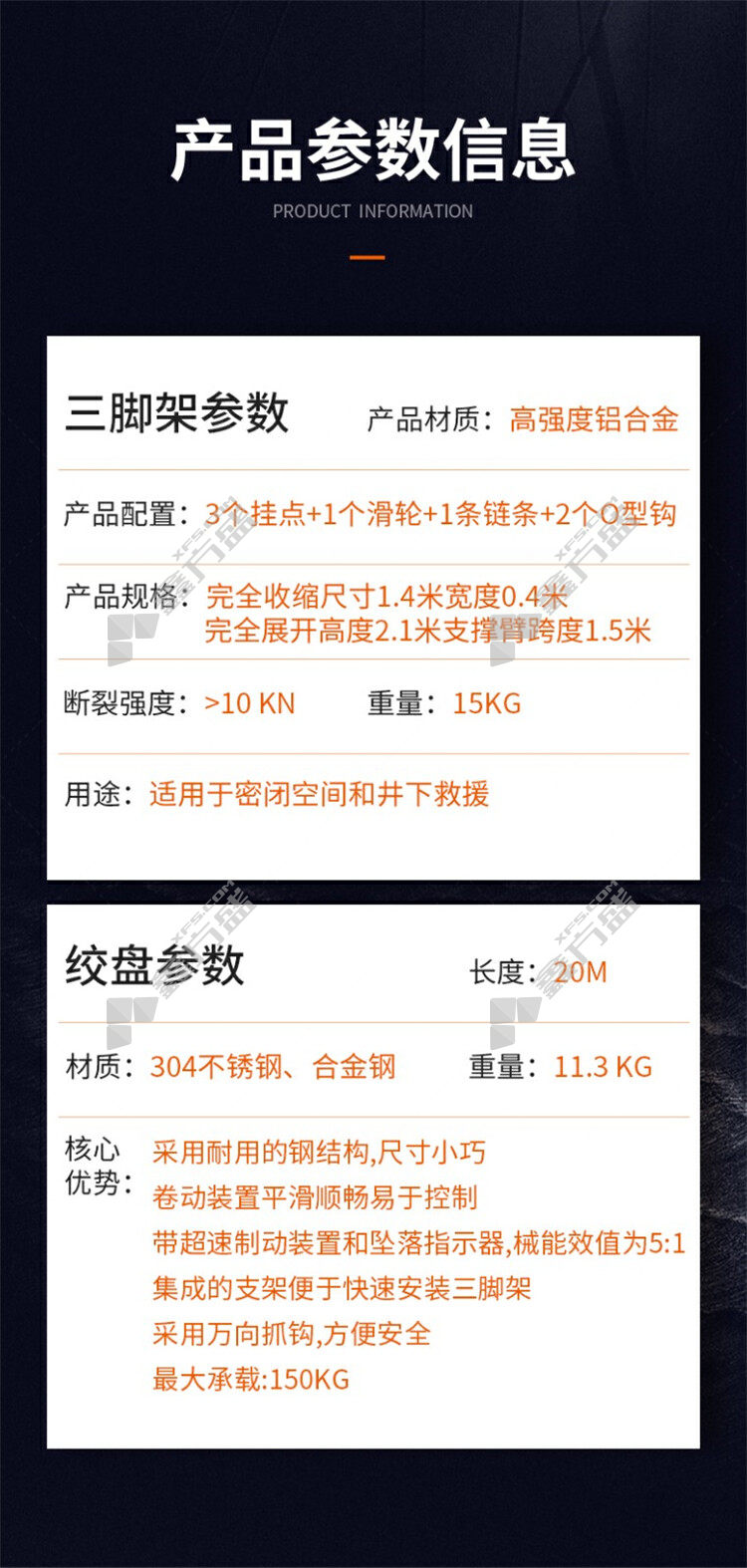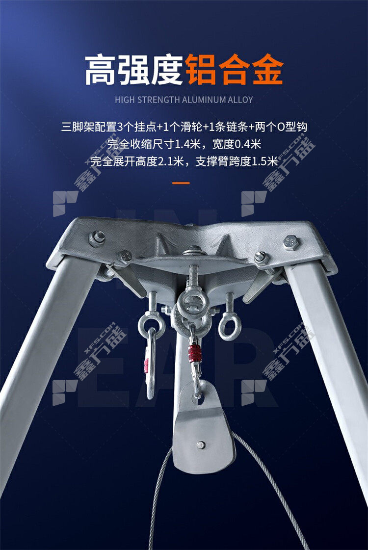 Tripod and winch without specifications.