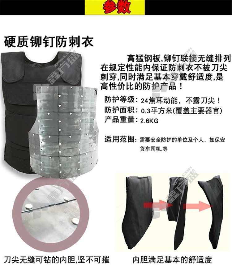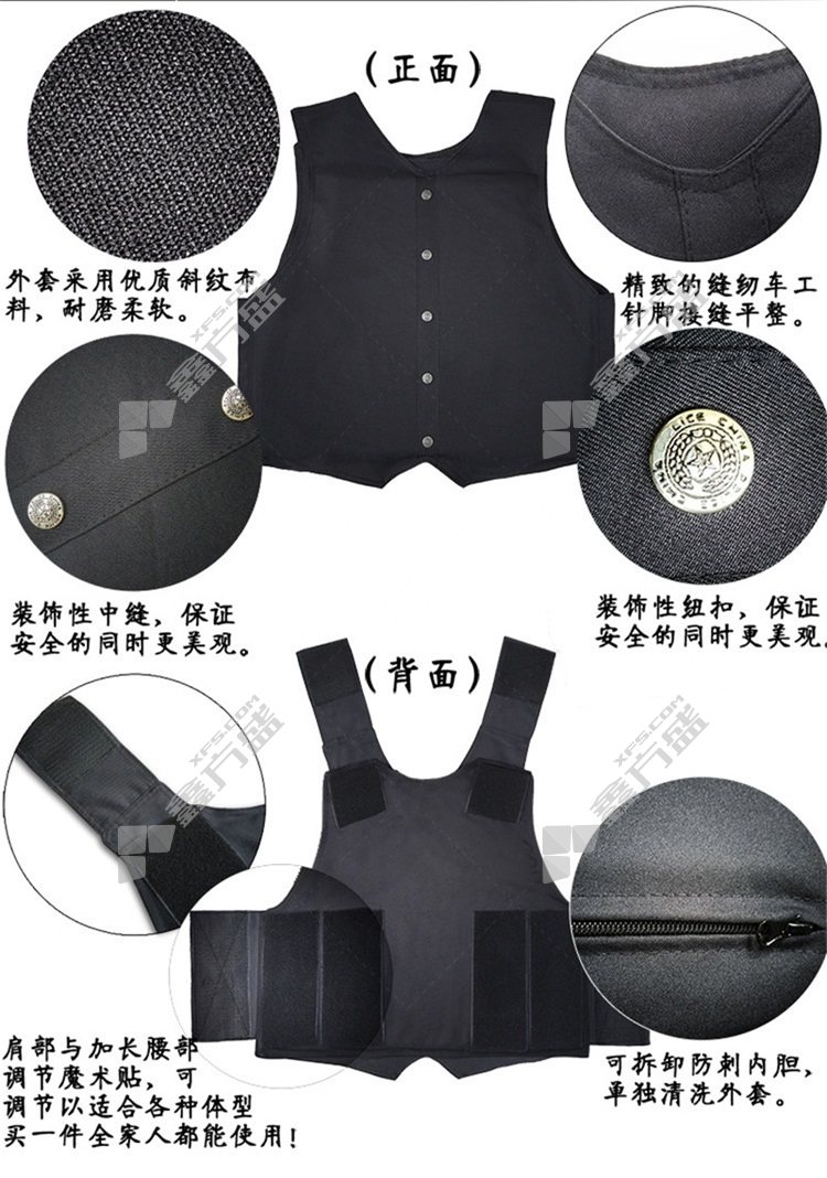 Tactical vest with stab-proof and cut-proof features, outdoor self-defense equipment, manganese steel plates, soft black material, unclassified.