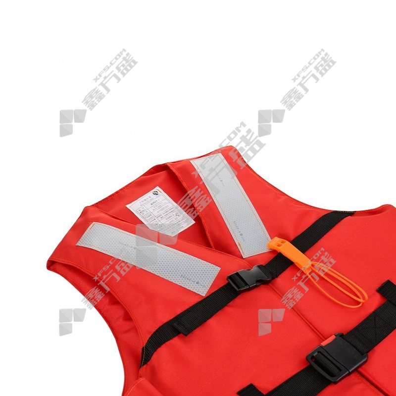 Life jacket for maritime emergency with large buoyancy in orange color, unspecified size.