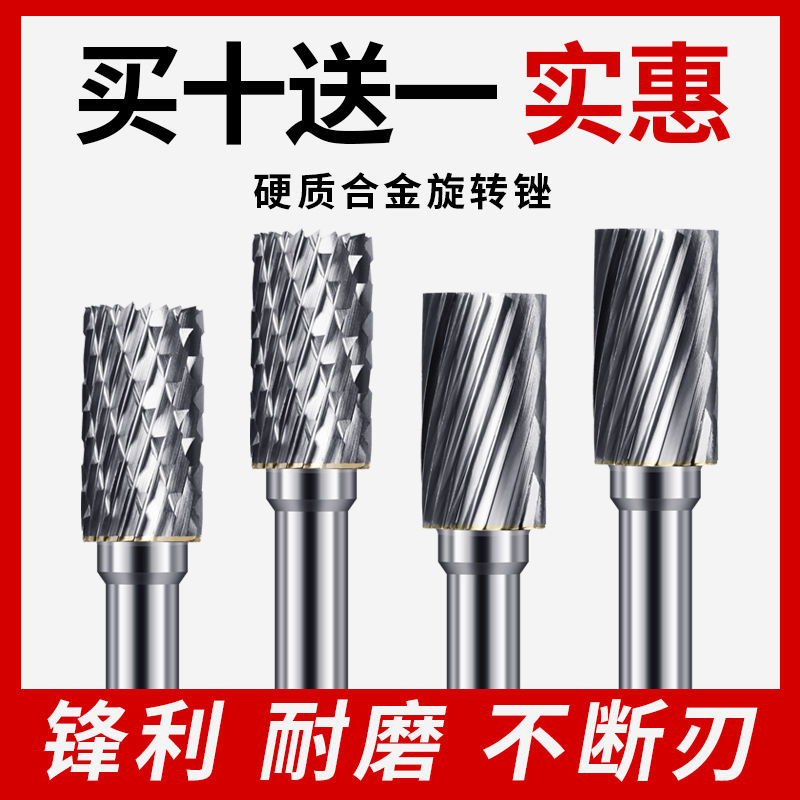 tungsten steel carbide rotary file tungsten steel grinding head metal woodworking carving rotary head cylindrical milling cutter electric grinding head