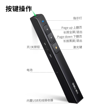 deli 2808 PL laser page turning pen red light rechargeable model no specifications