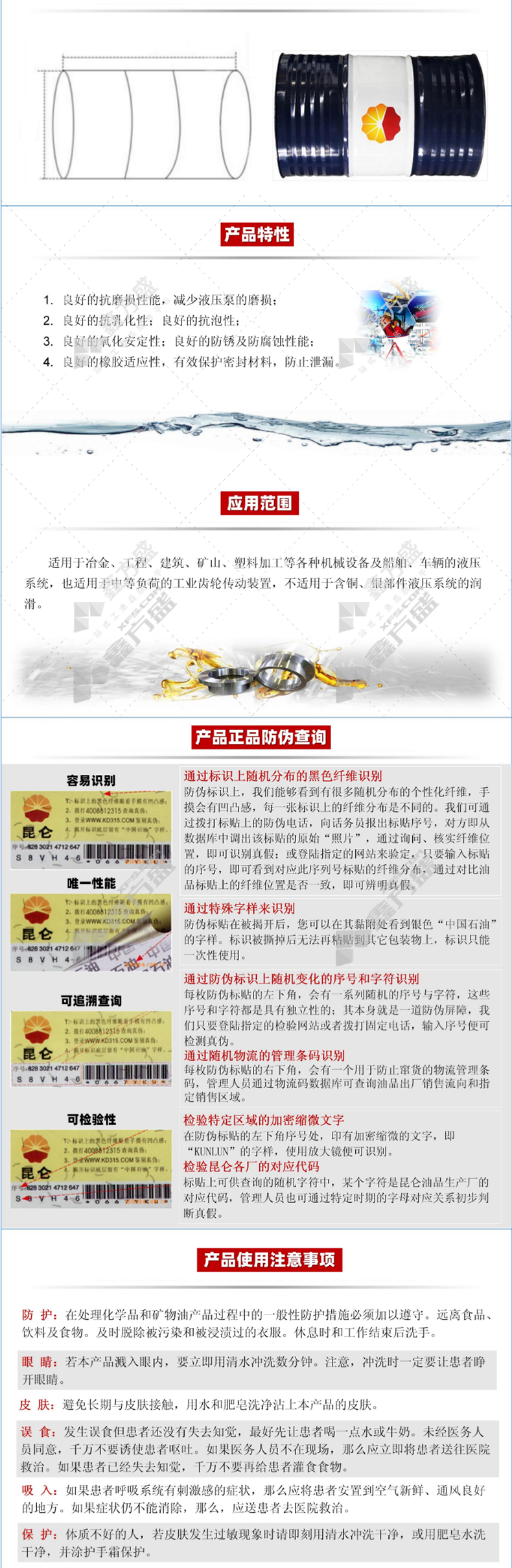 kunlun anti-oxidation and anti-rust hydraulic oil L-HL 170kg 32 no specifications