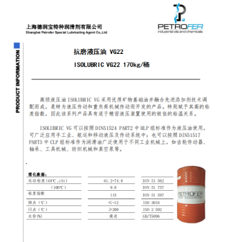 derunbao anti-wear hydraulic oil ISOLUBRIC VG22,170kg/bucket ISOLUBRIC VG22,170kg/bucket