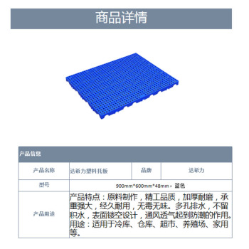 dashili plastic pallet 900 mm*600mm*48mm blue no specification