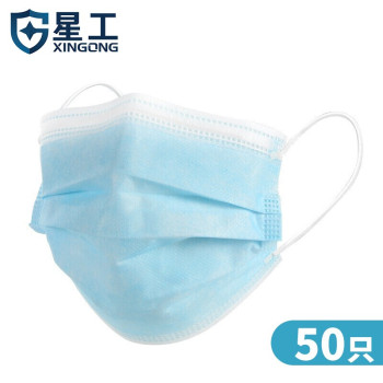 xingong ordinary ear-worn disposable three-layer mask melt-blown filter material non-woven blue 50 pieces /package has no specifications