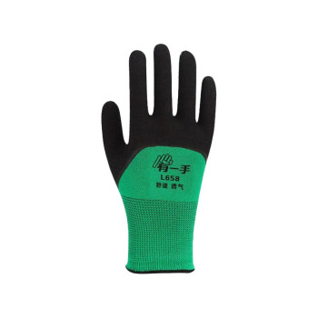deng sheng 13 needle polyester 3 /4latex-impregnated foam gloves #658 no. 9 green gauze black rubber no specifications