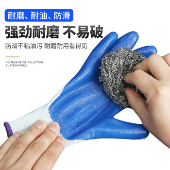 dengsheng 13-gauge polyester nitrile smooth waterproof rubber wear-resistant gloves #818 8.5number white gauze gray glue #818 /8.5number /white gauze blue glue