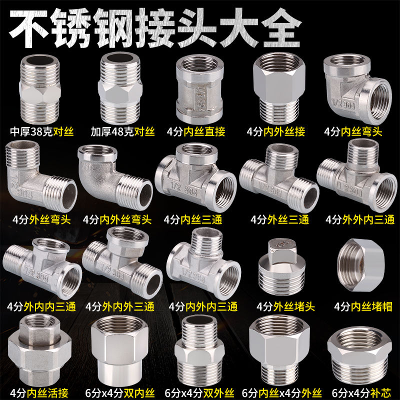 stainless steel joint inner thread direct inner and outer thread to thread tee elbow 6 points to 4 points reducer plumbing water pipe accessories 4 points to thread 38 grams