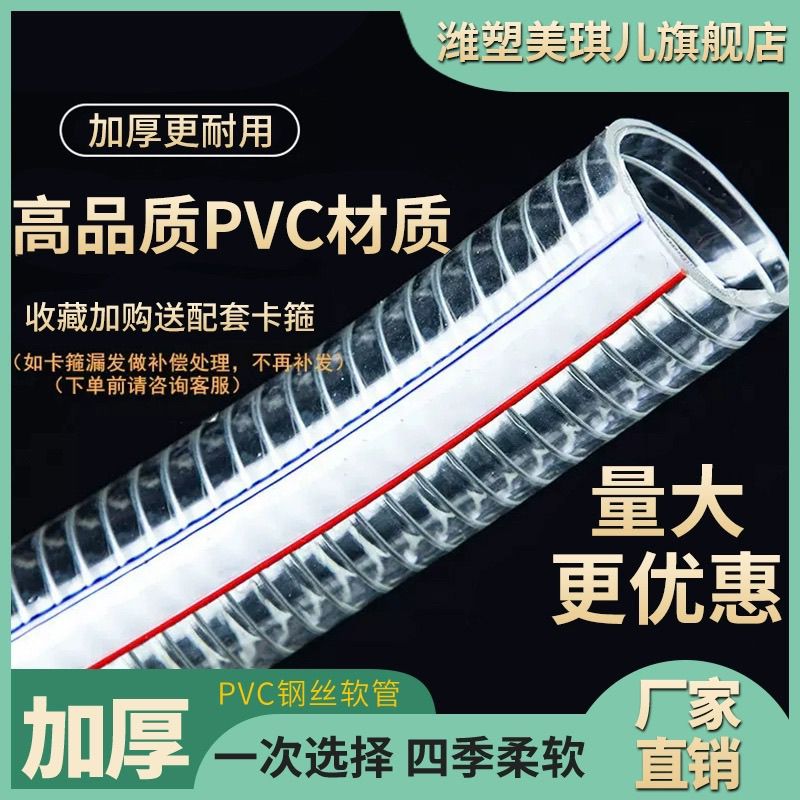 PVC steel wire tube transparent hose plastic one inch water pipe thickened oil pipe resistant to high pressure and high temperature 4-point vacuum tube inner diameter 10 mm1 rice price