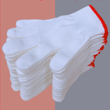 three british long-term SYCY thread gloves labor protection gloves white cotton yarn wear-resistant anti-slip 21.5 cm white with red edges, no specifications