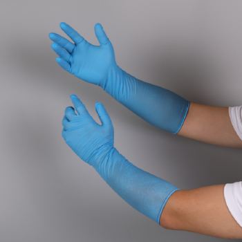 qomeike 16-inch extra long blue disposable nitrile gloves without powder 400 mm S code without powder /400mm S code