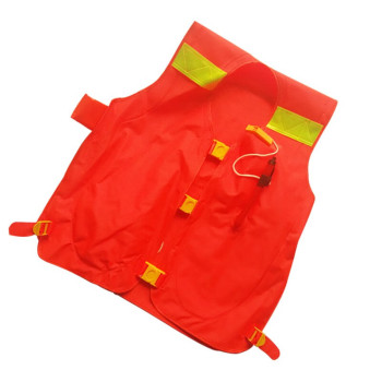 Life jacket for maritime emergency with large buoyancy in orange color, unspecified size. Orange high-buoyancy maritime life jacket