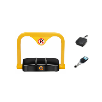 Vehicle parking space lock with increased thickness for impact resistance and waterproofing, controlled by mobile phone via Bluetooth. No specifications available. Bluetooth-controlled garage parking lock with increased thickness for impact resistance and waterproofing. No specifications.