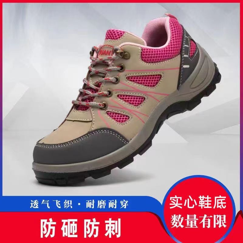labor protection shoes for women, steel toe caps, anti-smash and anti-puncture, summer fashion, breathable, deodorizing, lightweight, cowhide sole, wear-resistant work shoes 203 pink flying weave - anti-smash and anti-puncture +34