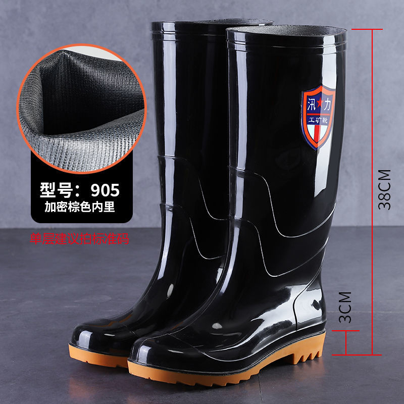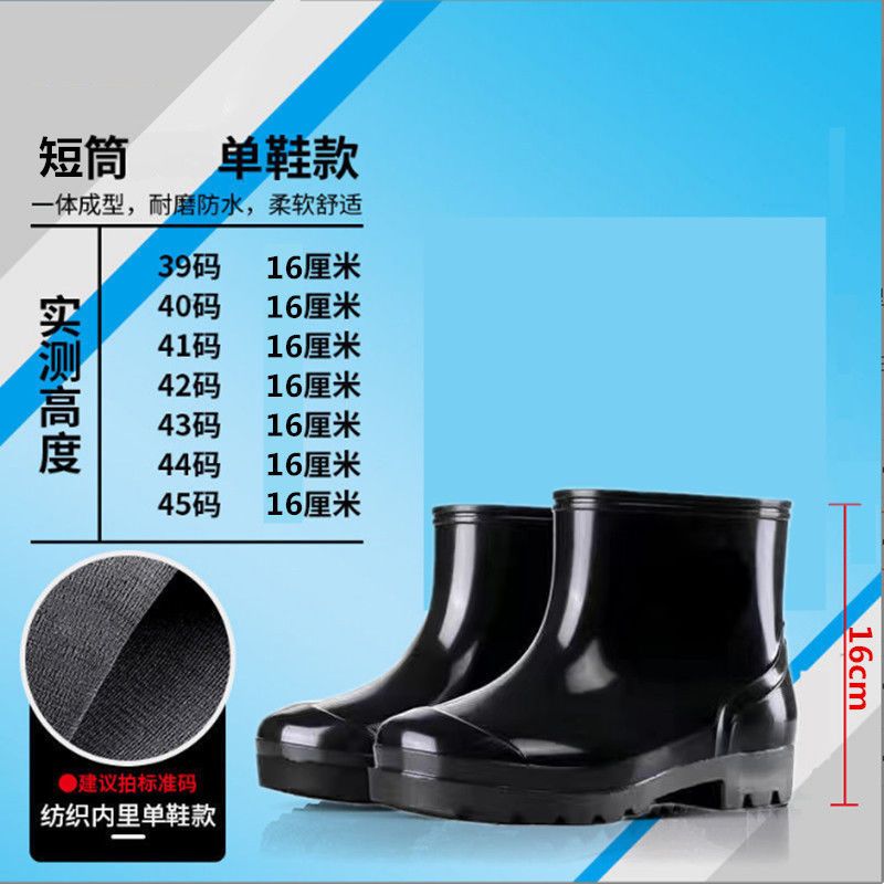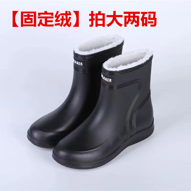 drawstring rain boots for men with plush cotton for warmth, work boots, rain boots, kitchen non-slip and waterproof shoes for men and women, rubber shoes, black with black bottom [fixed velvet], buy two sizes larger, medium tube +note plush
