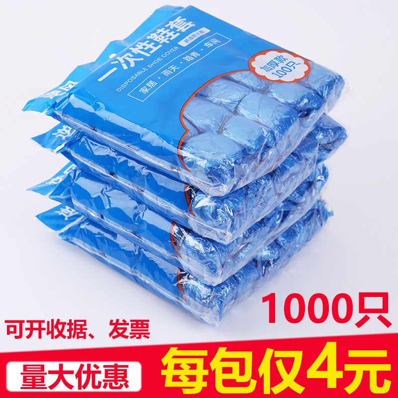 disposable shoe covers, thickened, waterproof, wear-resistant, non-slip, room student, adult hospitality plastic foot covers, plastic thickened [blue 100 pieces]