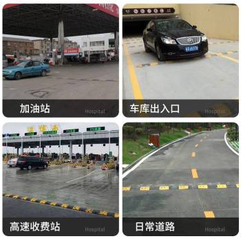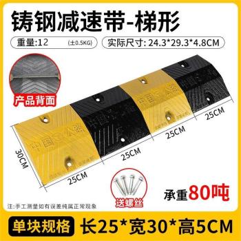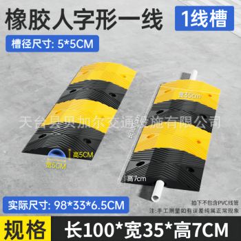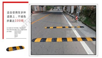Rubber enhanced three-line road speed bump with no specifications.