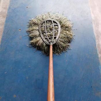 Mop with Wooden Handle and White Cotton Yarn Round Steel Head without Specification.