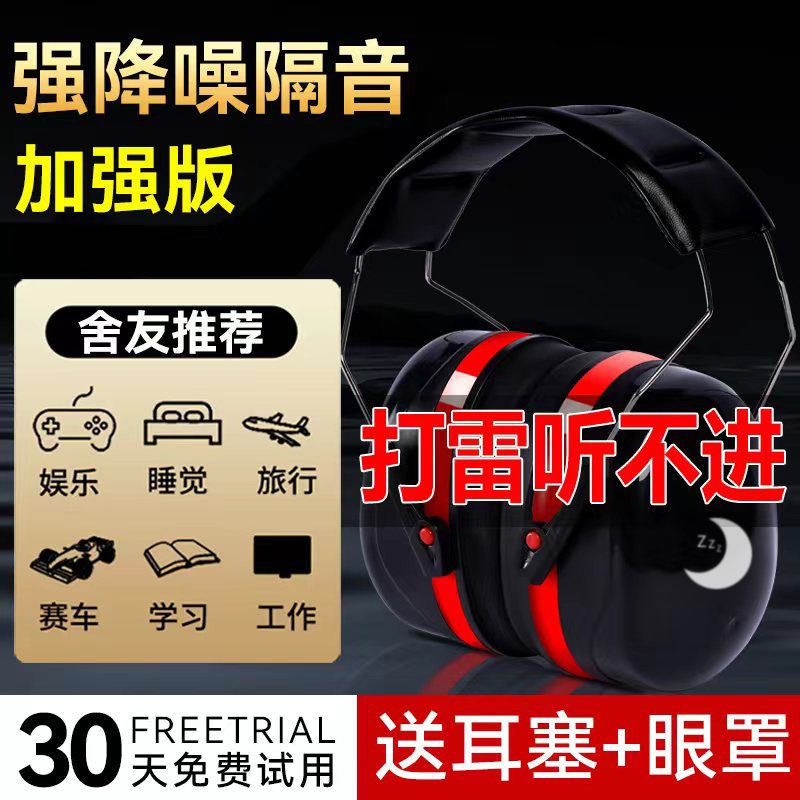 noise-isolating earmuffs, noise-reducing headphones, sleeping ear artifact, industrial-grade, super-strong noise-proof, children's earplugs, head-mounted, comfortable, adjustable, and ear-free