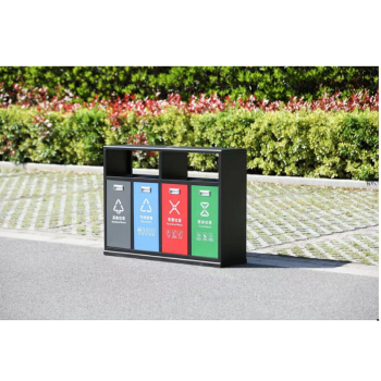 street community outdoor four-category stainless steel trash can galvanized door panel 120 L 127*36*90cm stainless steel color stainless steel door panel /120L/127*36*90cm/stainless steel color