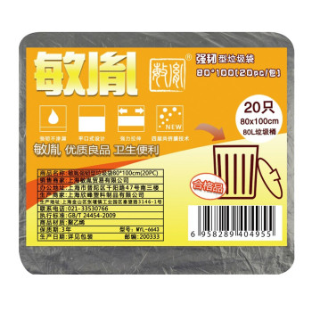 min yin MYL-6643 strong and tough garbage bag 80 *100 20pc/package 3 packages /bag black no specification