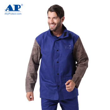 umeng AP-2530 fireproof cloth with charcoal brown leather sleeve welding suit AP-2530 XL blue AP-2530/L/blue