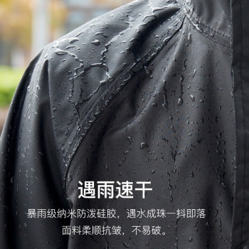 XC all-in-one raincoat and windbreaker style raincoat with shrink cord at the hood collar. strong waterproof black no specifications