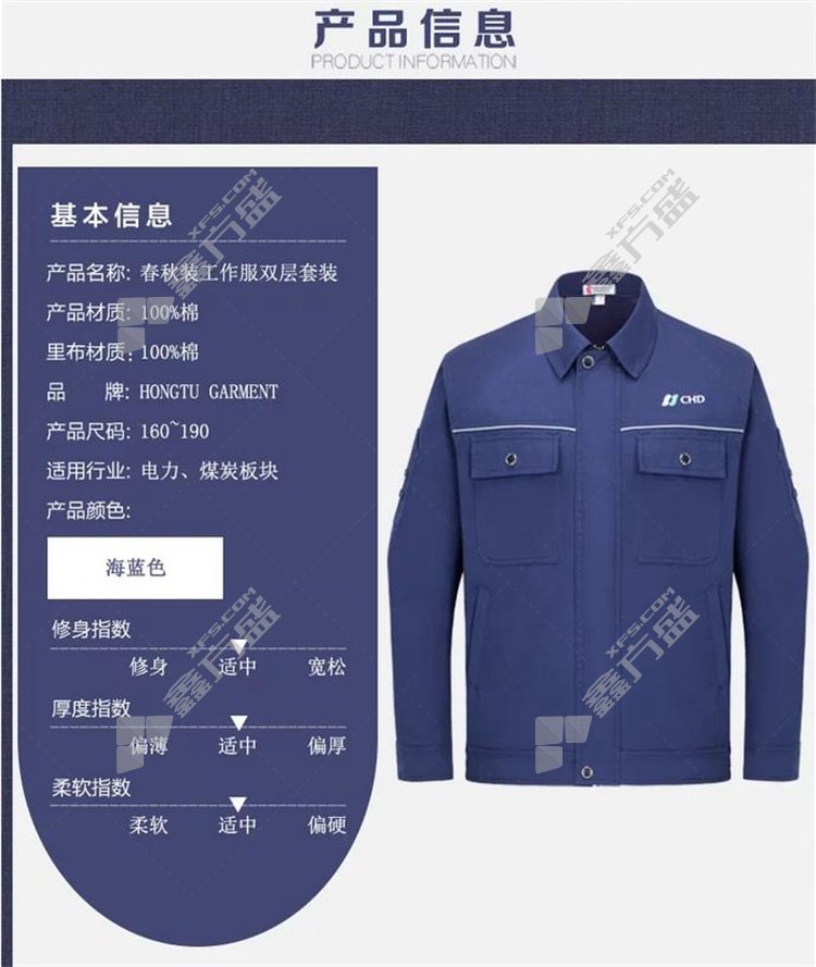 hongtu spring and autumn work clothes double layer suit ZKH-CQZSC 160 code sea blue no specifications