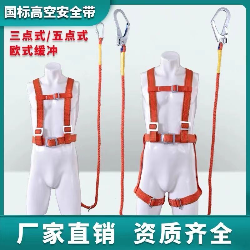 national standard aerial work safety belt outdoor construction safety belt full body five-point safety belt safety rope electrician belt national standard half-body three-point +single rope small hook 2 meters