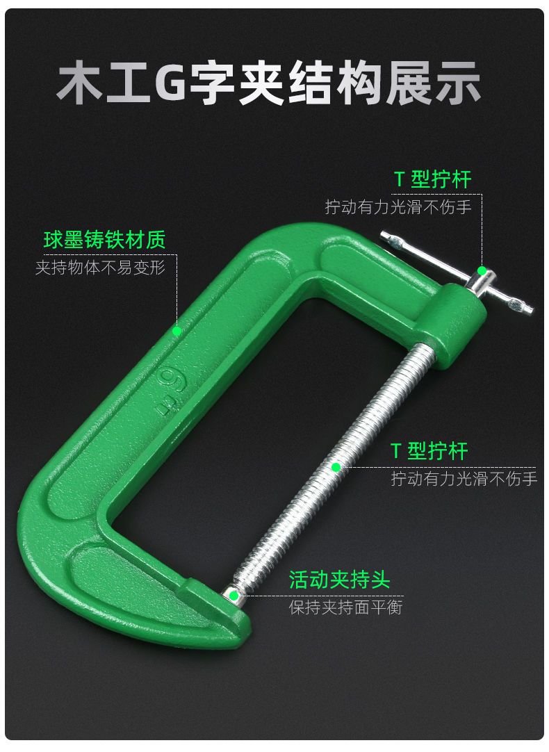 重型强力G字夹快速木工固定夹具C紧器加深摇杆夹子f工装夹具收到!用料厚实,做工不错,有需要时再回购。