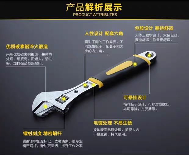 adjustable wrench tool movable bathroom wrench multi-function large opening board short handle wrench adjustable wrench board 8 inch adjustable wrench