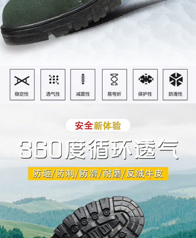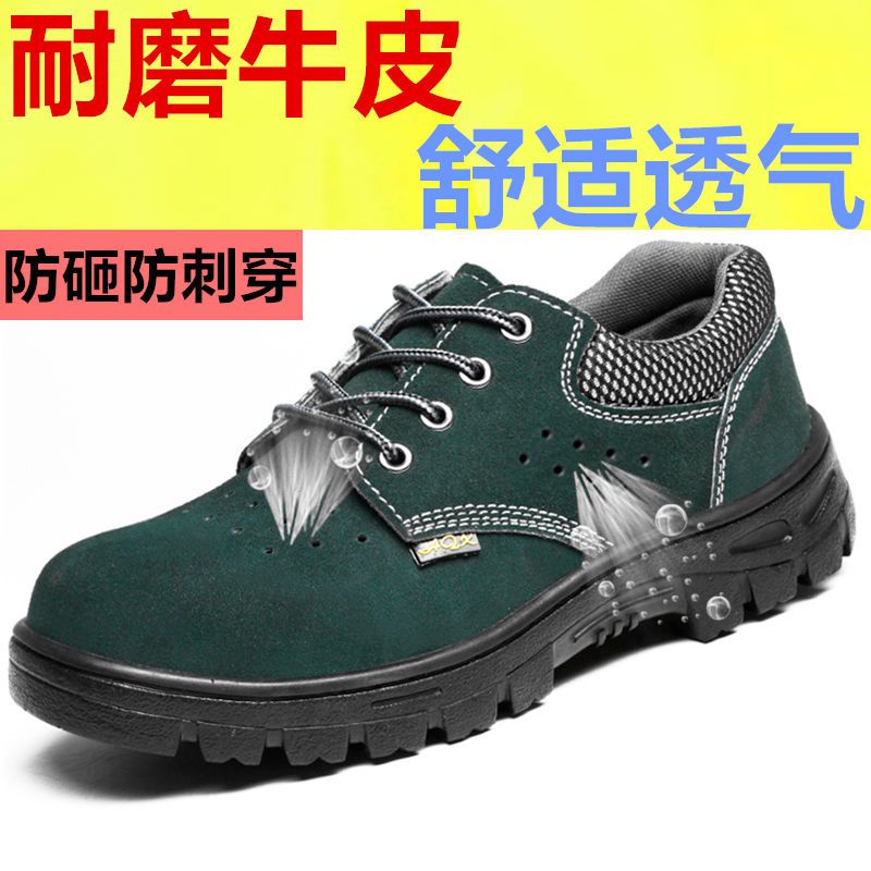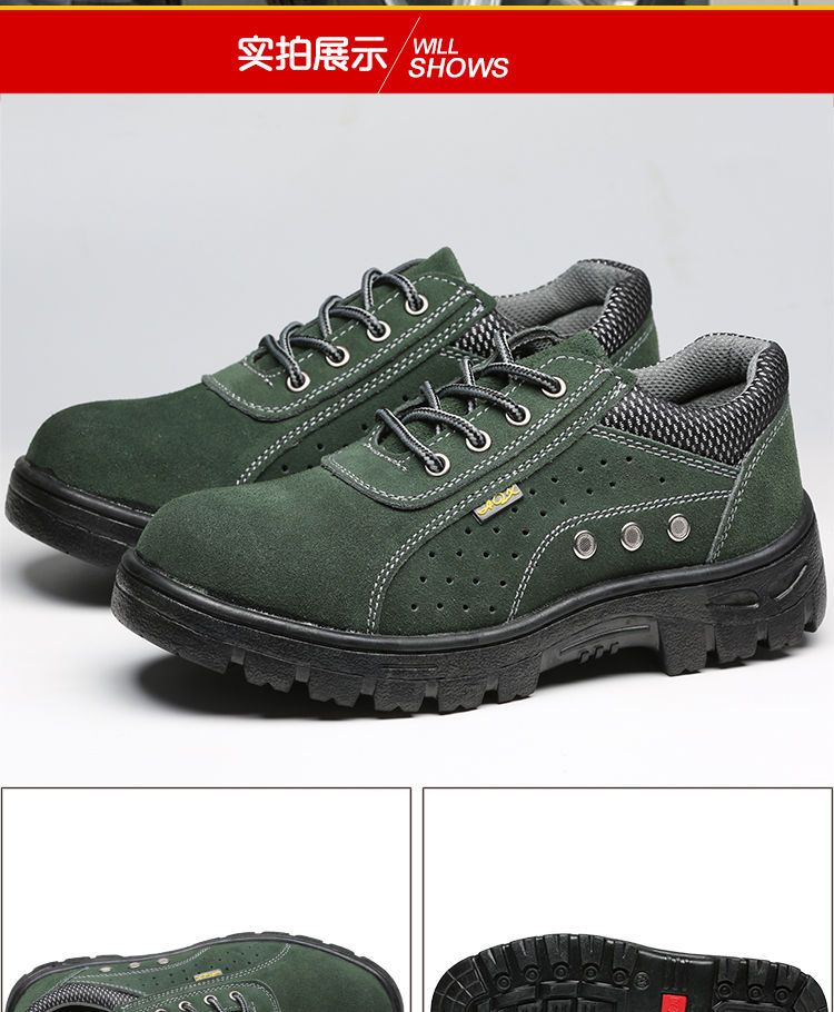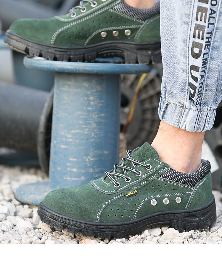 men's summer breathable steel toe caps for anti-smash and anti-puncture summer work site welders four seasons lightweight olive green anti-smash and anti-puncture breathable 199- A+36