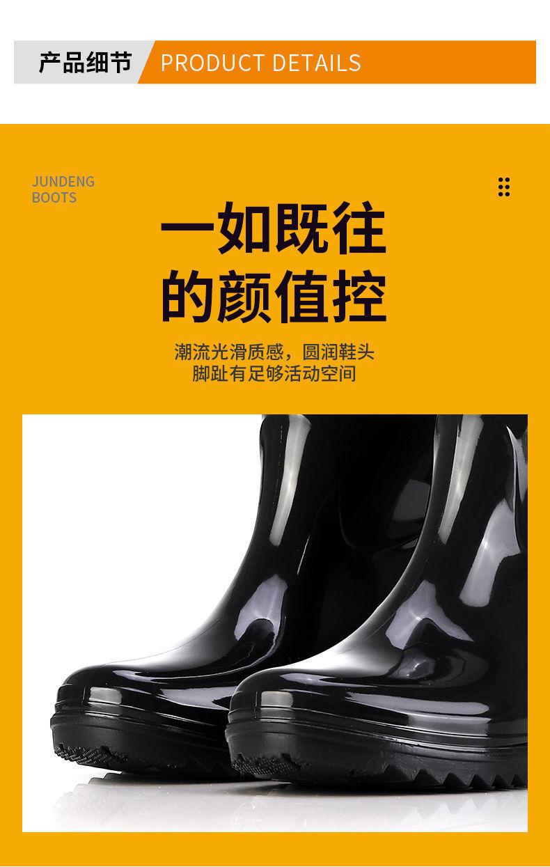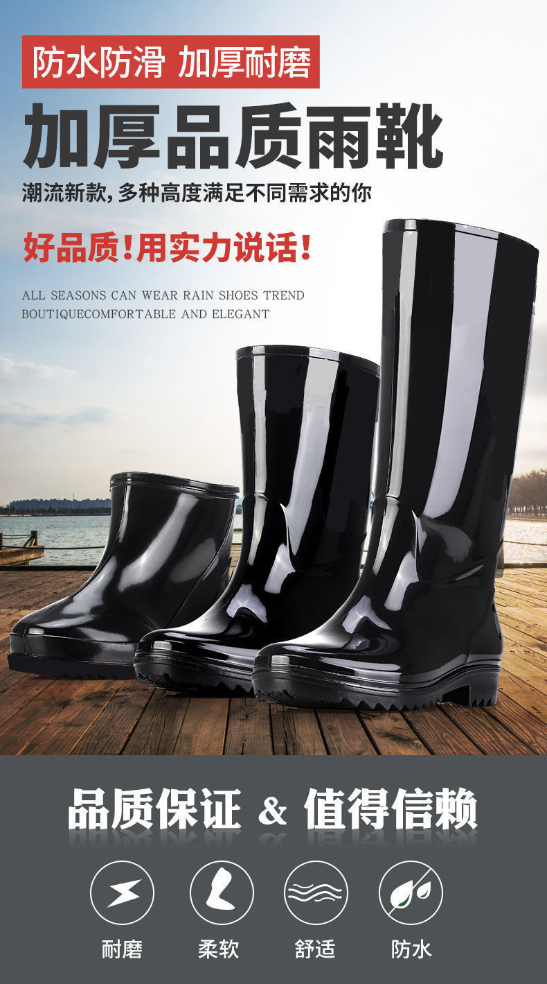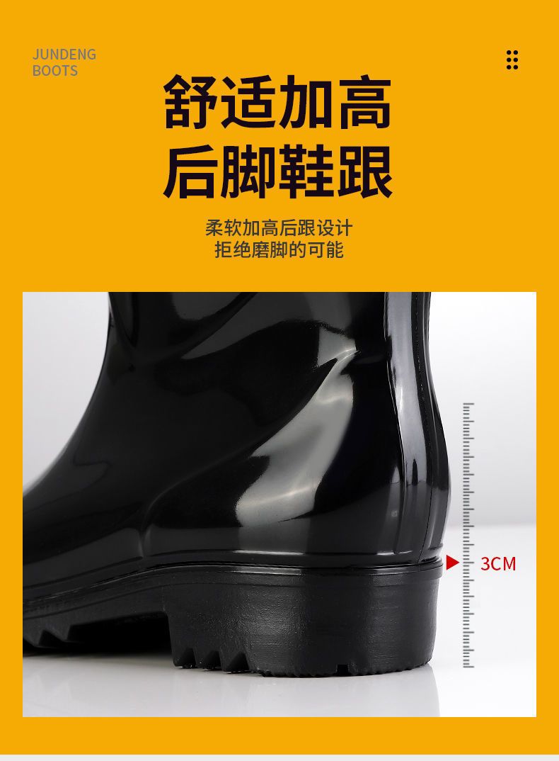 rain boots water boots men's rain boots water boots short medium and high tube plus velvet labor protection tendon sole kitchen construction site car wash wear-resistant non-slip thick black - low tube [no cotton cover] +38