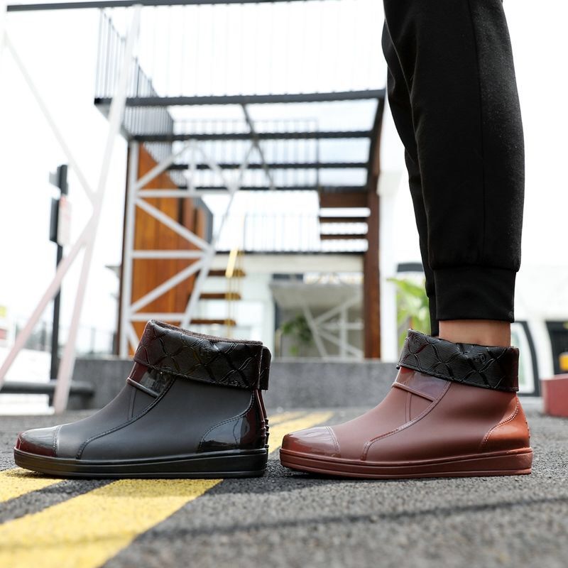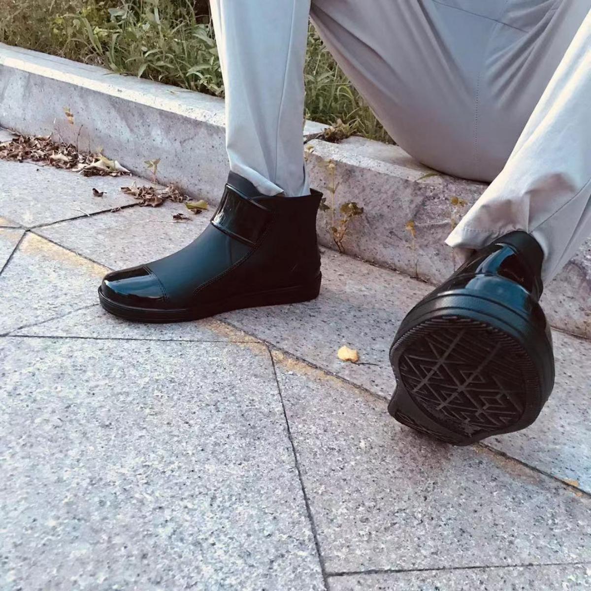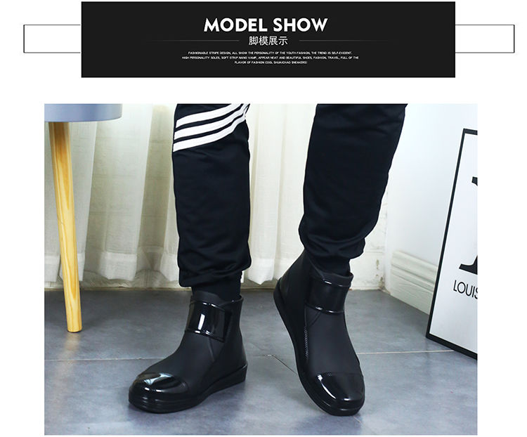 short-barreled rain boots for men, waterproof and non-slip integrated rain boots, fashionable water shoes, men's kitchen work shoes, rubber shoes [669] black single shoes, one size larger +39