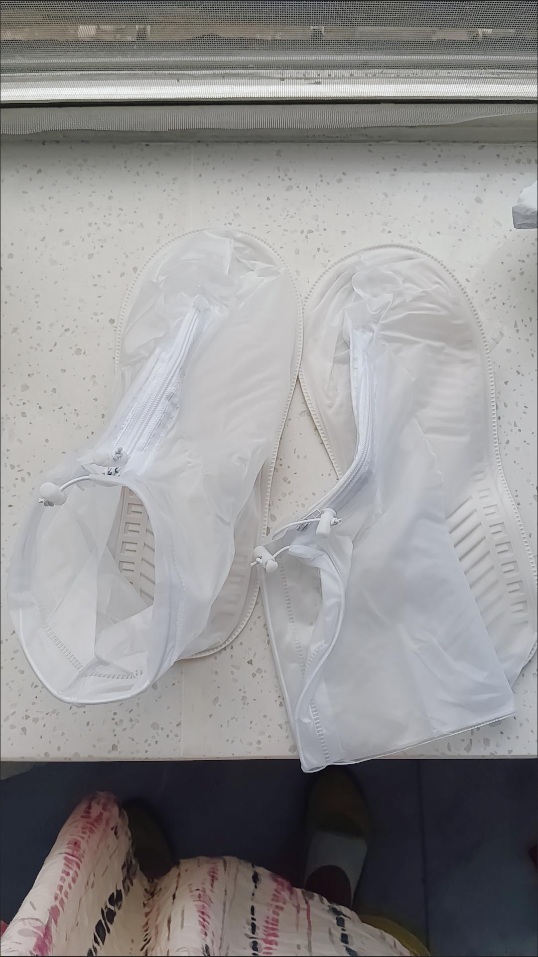 亲鞋套完好无损已收到,心急好想看看这宝贝究竟什么样,材质很好,做工精细,穿上很合适,带着方便,小东西大作用,这回下雨天出去鞋子就不会湿了。很喜欢,会推荐身边朋友,物流很快服务好给五星好评╰(*´︶`*)╯继续回购!