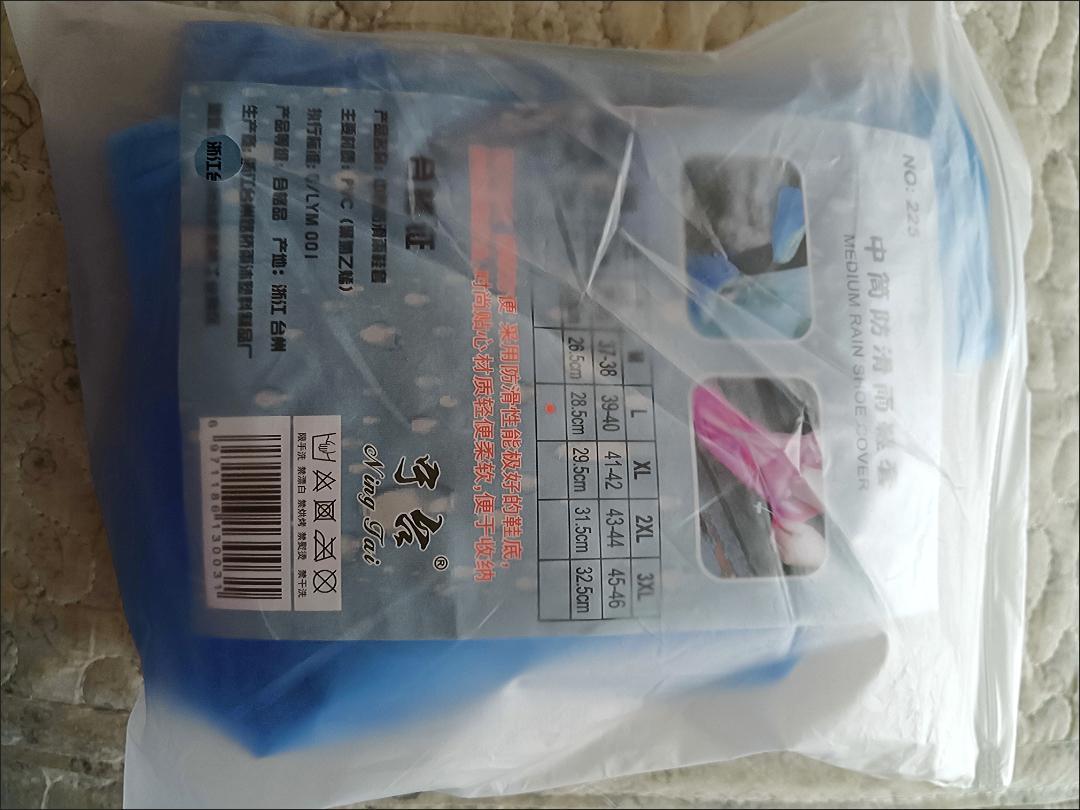 雨鞋套收到,买大了一码,里面空间也大了,一般的运动鞋能穿,42码的鞋穿着正好合适。这鞋的质量可以,面比较厚,旅游去带上很方便。给五星好评。