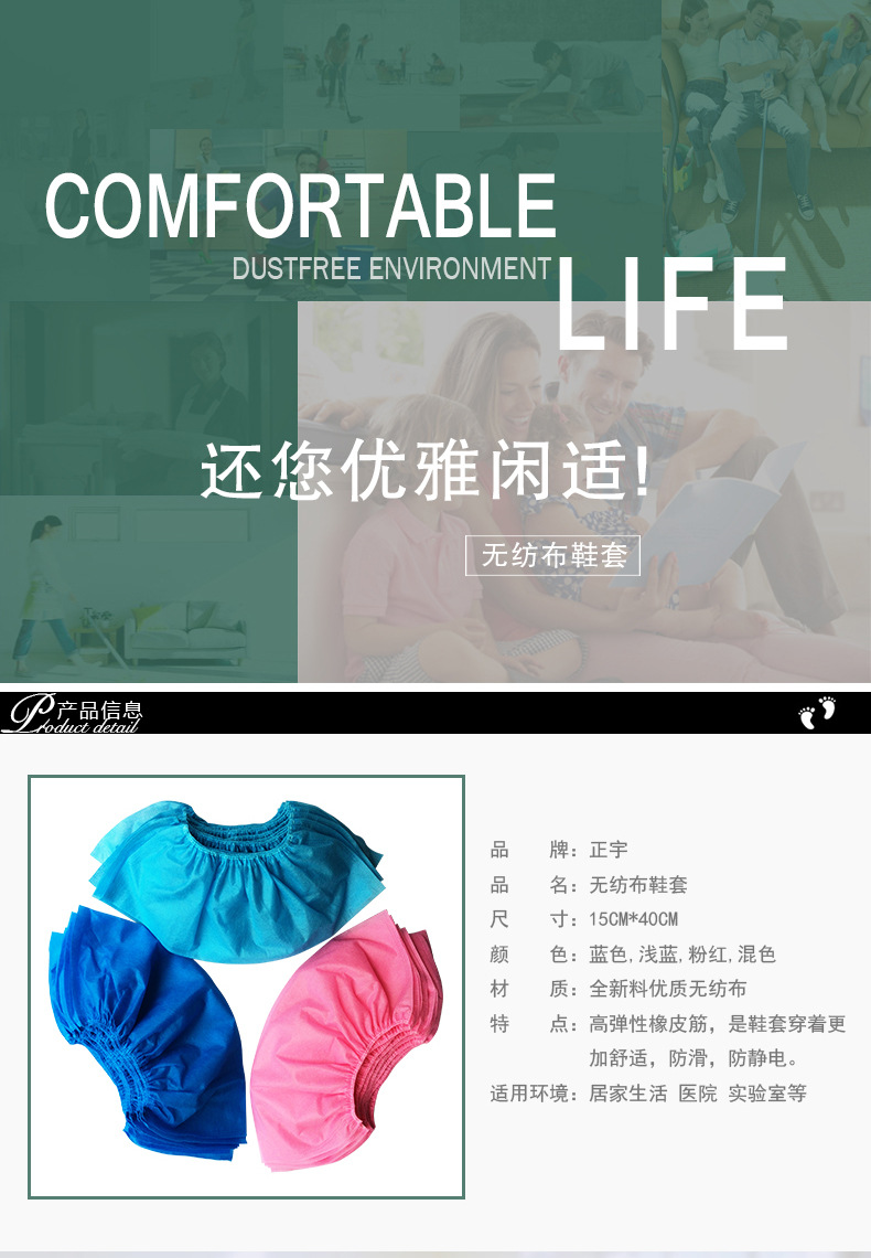 鞋套很好!备用在家来客人很方便免别人拖鞋的尴尬与麻烦也好搞卫生!很好很喜欢!这个还蛮值得购买的!给个好评!喜欢!