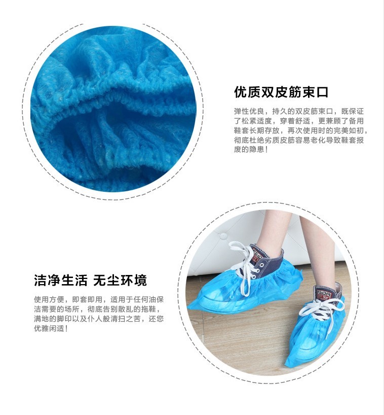 一次性加厚塑料鞋套收到.质量挺好.挺结实的.物美价廉.家里来客人再也不用准备一堆拖鞋了.客人走了还要洗刷.麻烦又占地方.有了这个鞋套太方便了太好了.准备再多买一些。